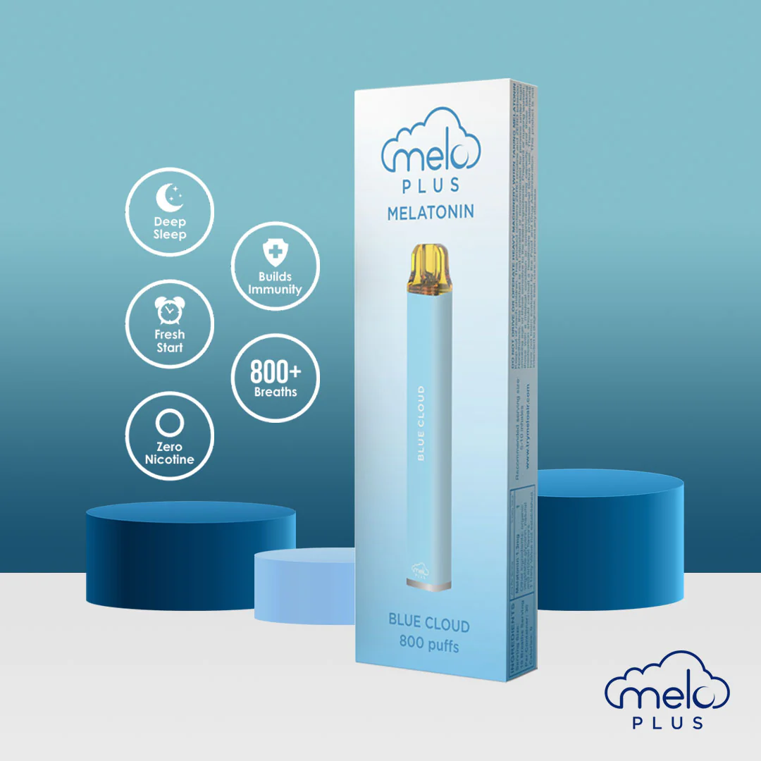 A soothing sleep aid that comes with a tasty puff of organic Blue Cloud flavor. Inhale a mild dose of melatonin that takes effect in minutes, giving your body a gentle signal that it’s time to slumber. The MELO Plus melatonin vape can last for weeks, giving you a deep reservoir of plant-powered relaxation.